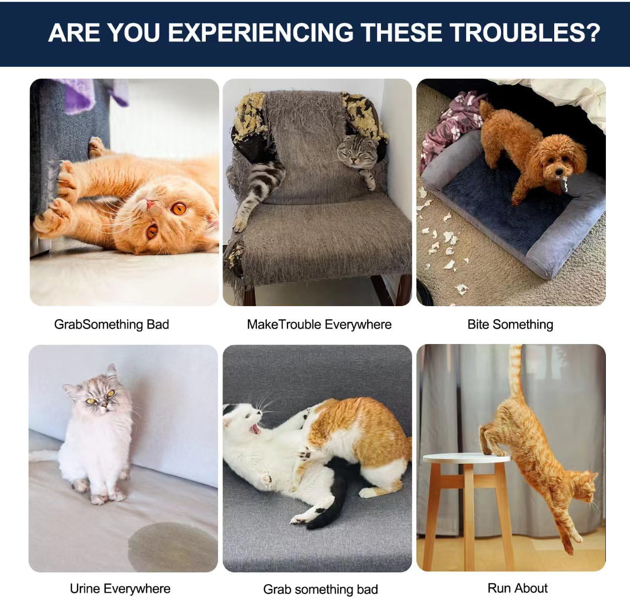 - Protect Your Home from Scratches:Tired of scratched furniture and shredded curtains? Our premium deterrent spray helps stop unwanted cat scratching and chewing, keeping your sofa, carpets, and drapes looking like new.