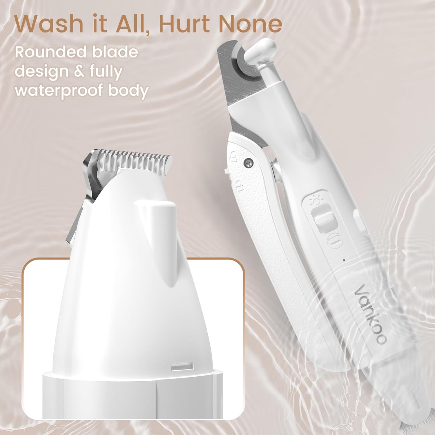 - [IPX7 WATERPROOF & SPLASH GUARD] - Fully submersible for rinsing debris under tap water; patented splash-proof shield blocks flying fragments—keeping dog grooming areas clean and reducing pet stress.